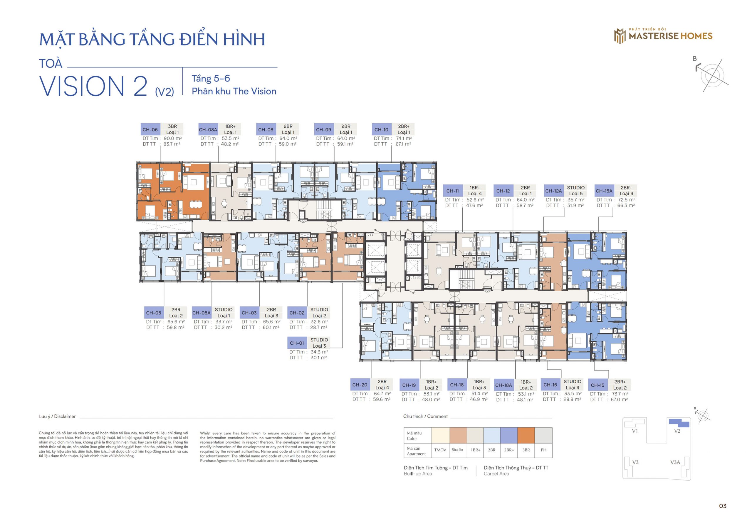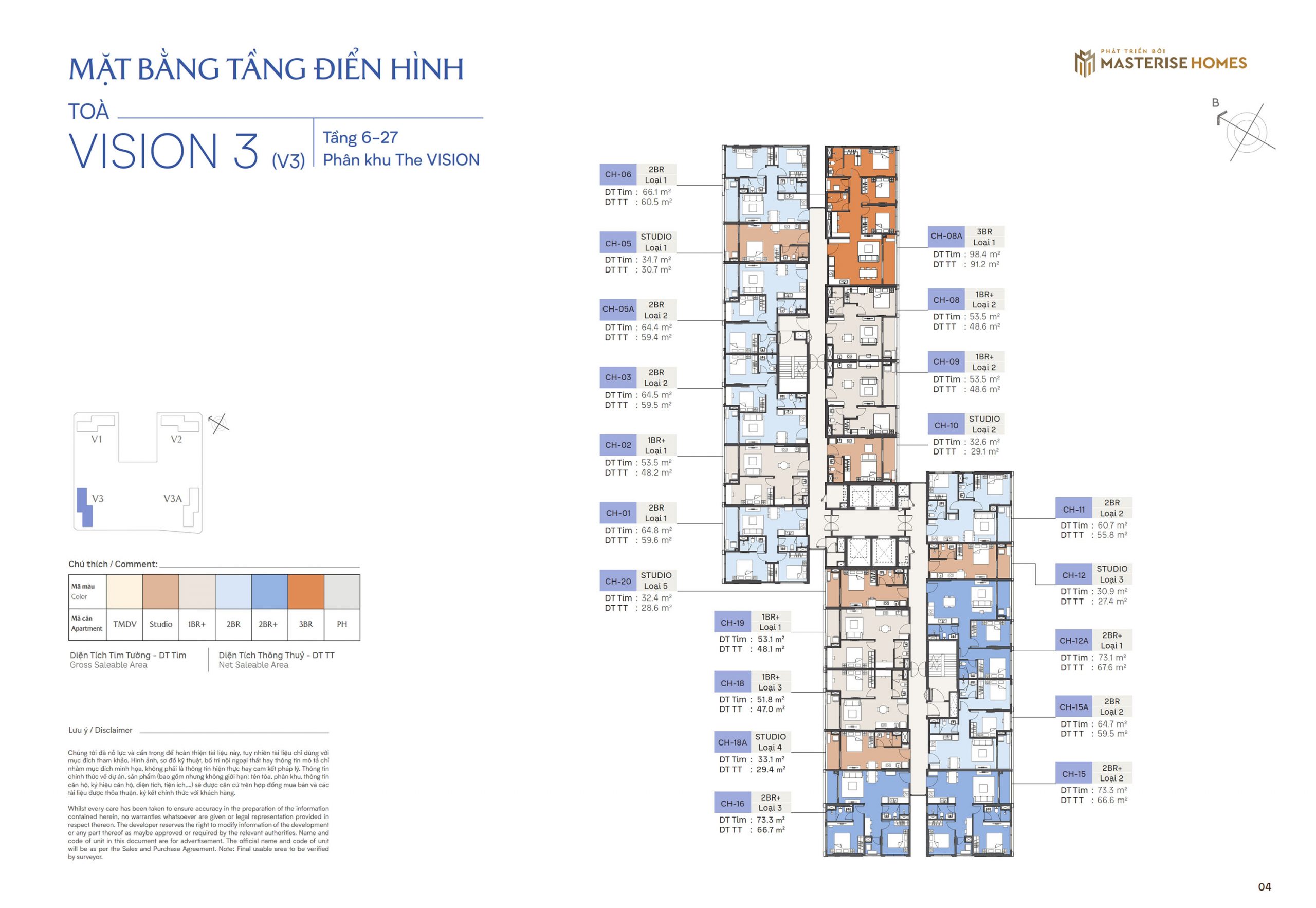 Diện tích: 29,4 – 93,3m2 (căn hộ Studio – 3PN).