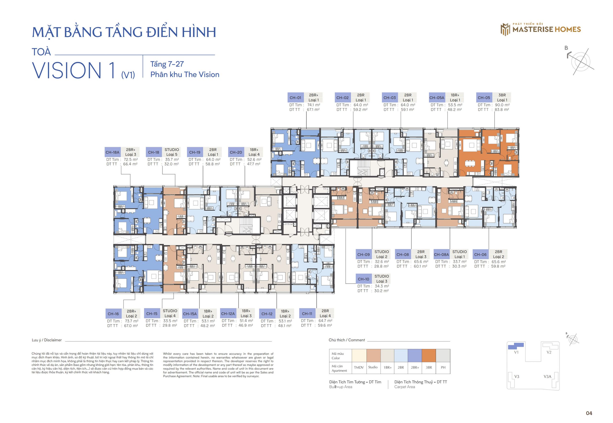 Loại hình căn hộ: Studio, 1PN+, 2PN, 2PN+, 3PN và Penthouse.