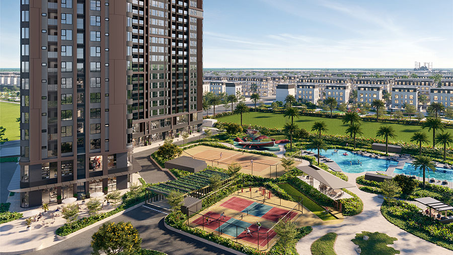 Tái hiện nhịp sống năng động, kết nối và cân bằng giao hòa cùng thiên nhiên, hệ tiện ích thể thao liên hoàn cùng các mảng xanh đa tầng của cây cỏ, hoa lá giúp kiến tạo nên một không gian cảnh quan với những trải nghiệm sống, làm việc và giải trí đầy hứng khởi mỗi ngày. Các hình khối kiến trúc xây dựng cùng hệ tiện ích đỉnh cao được sắp đặt hài hòa và khoa học trong tổng thể không gian cảnh quan giúp kiến tạo nên một không gian sống lý tưởng cân bằng, hòa quyện giữa con người và thiên nhiên.