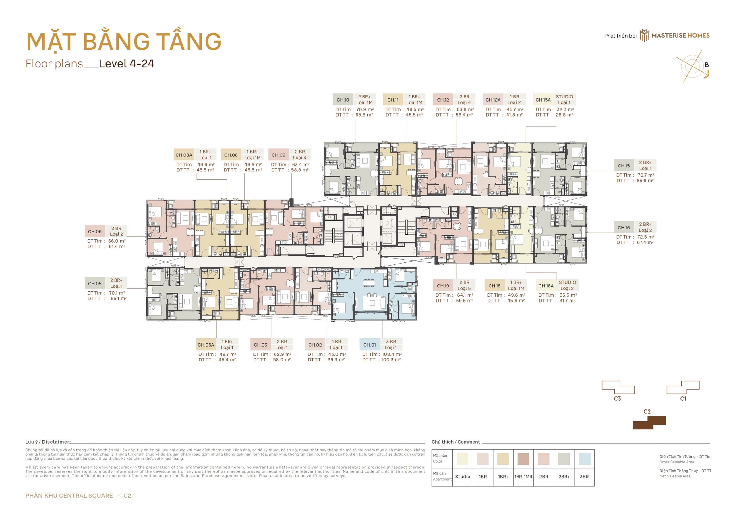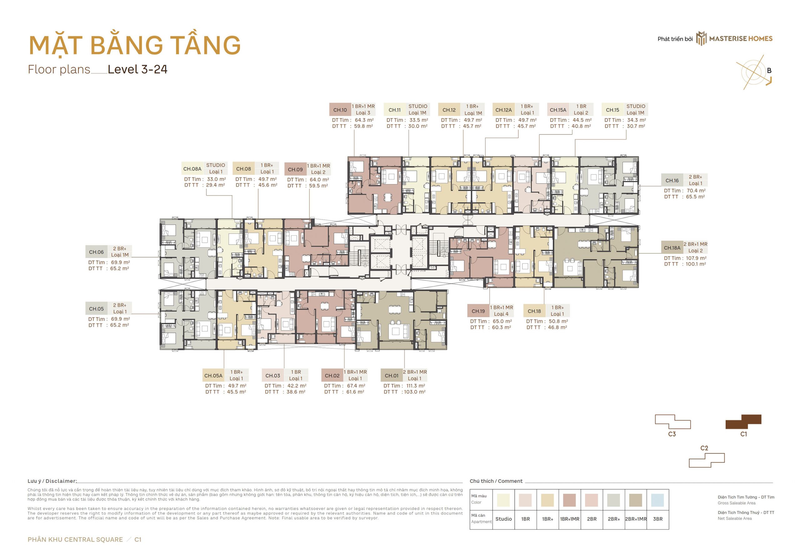 Loại hình: Studio, 1PN, 1PN+, 1PN+1, 2PN, 2PN+, 3PN, 4PN, Duplex và Penthouse.