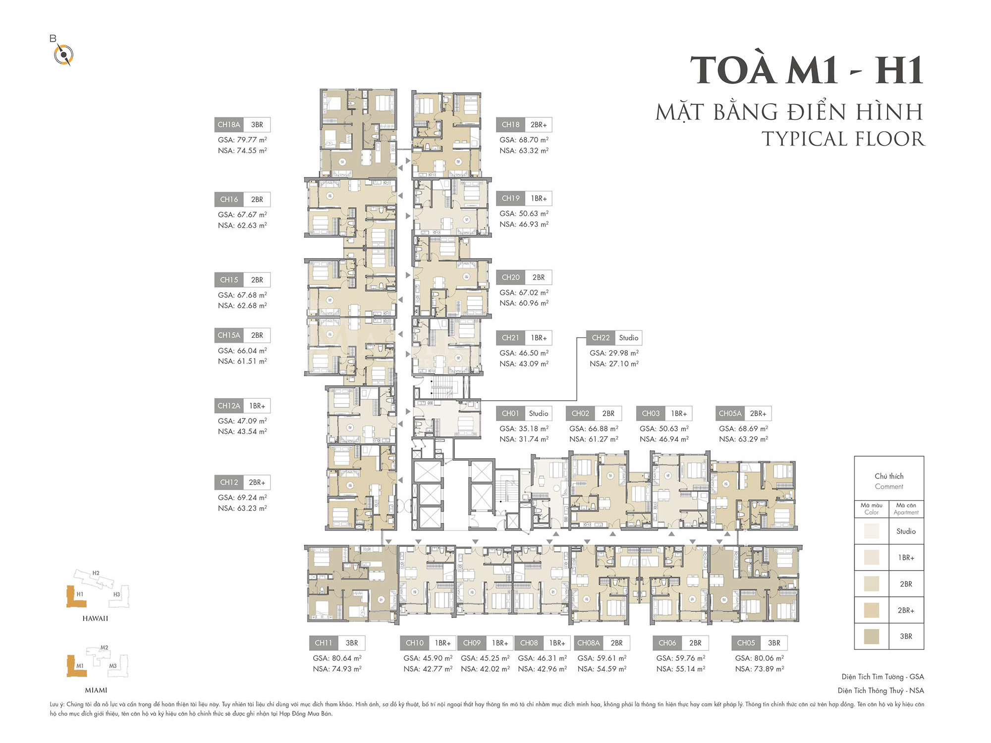 Loại hình: Studio, 1 ngủ + 1, 2 ngủ, 2 ngủ + 1, 3 ngủ.