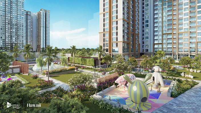 Công viên nội khu rộng lớn nổi bật với không gian cây xanh mát lành cùng hệ thống sảnh lounge thư giãn sang trọng giúp xua tan mọi mệt mỏi của cuộc sống. Ngoài ra còn có công viên Botanic cùng hệ thống các sân chơi trẻ em, sân thể thao hay các khu shop chân đế với siêu thị, nhà hàng, cafe, ..
